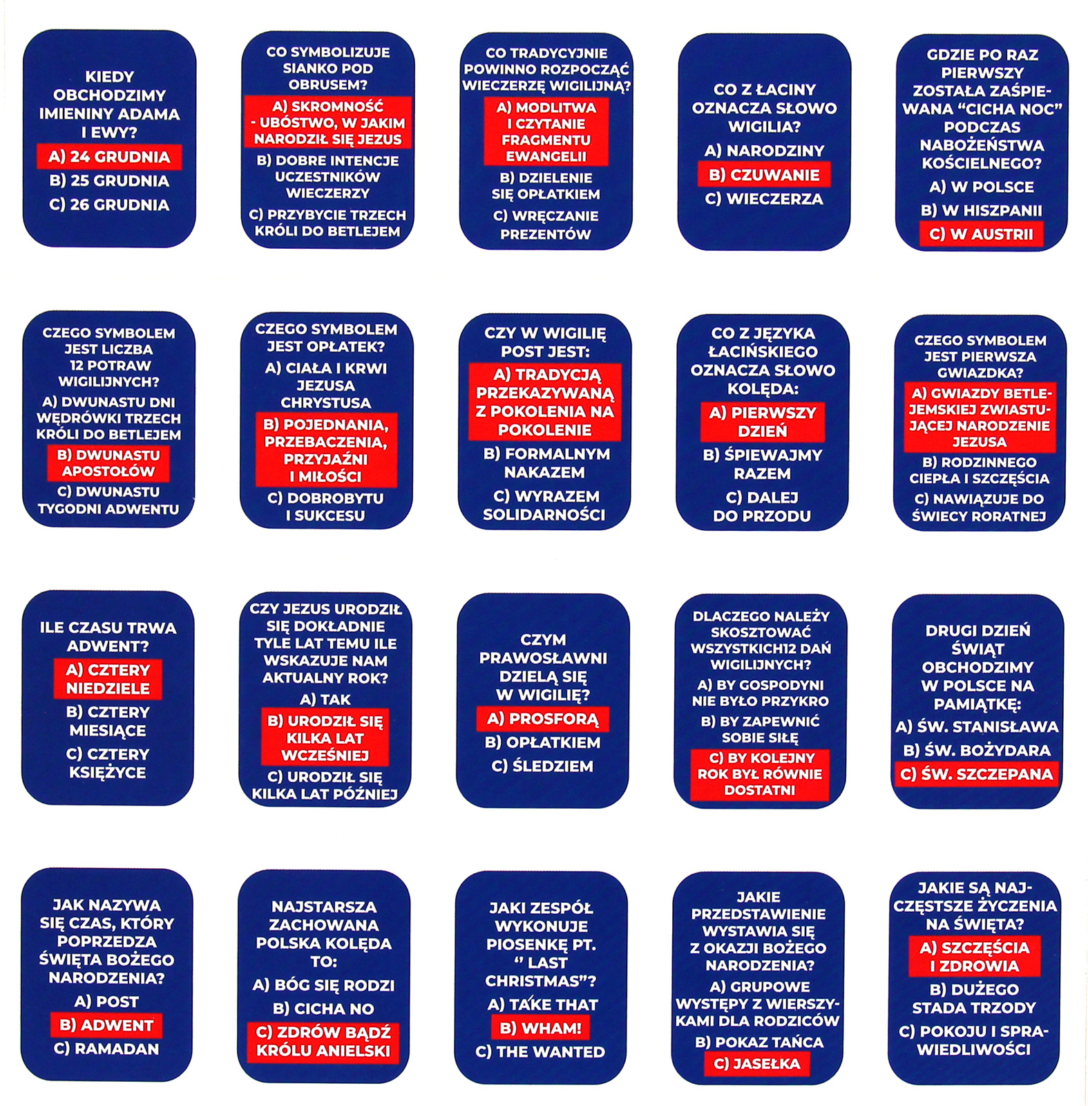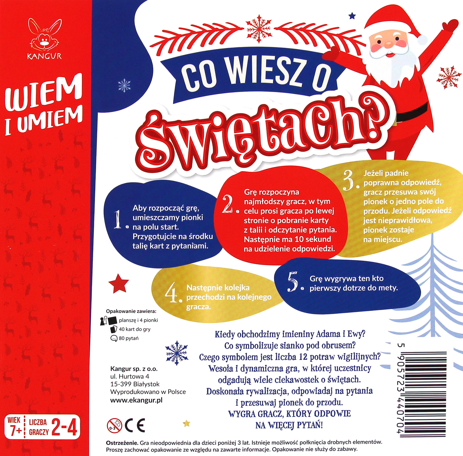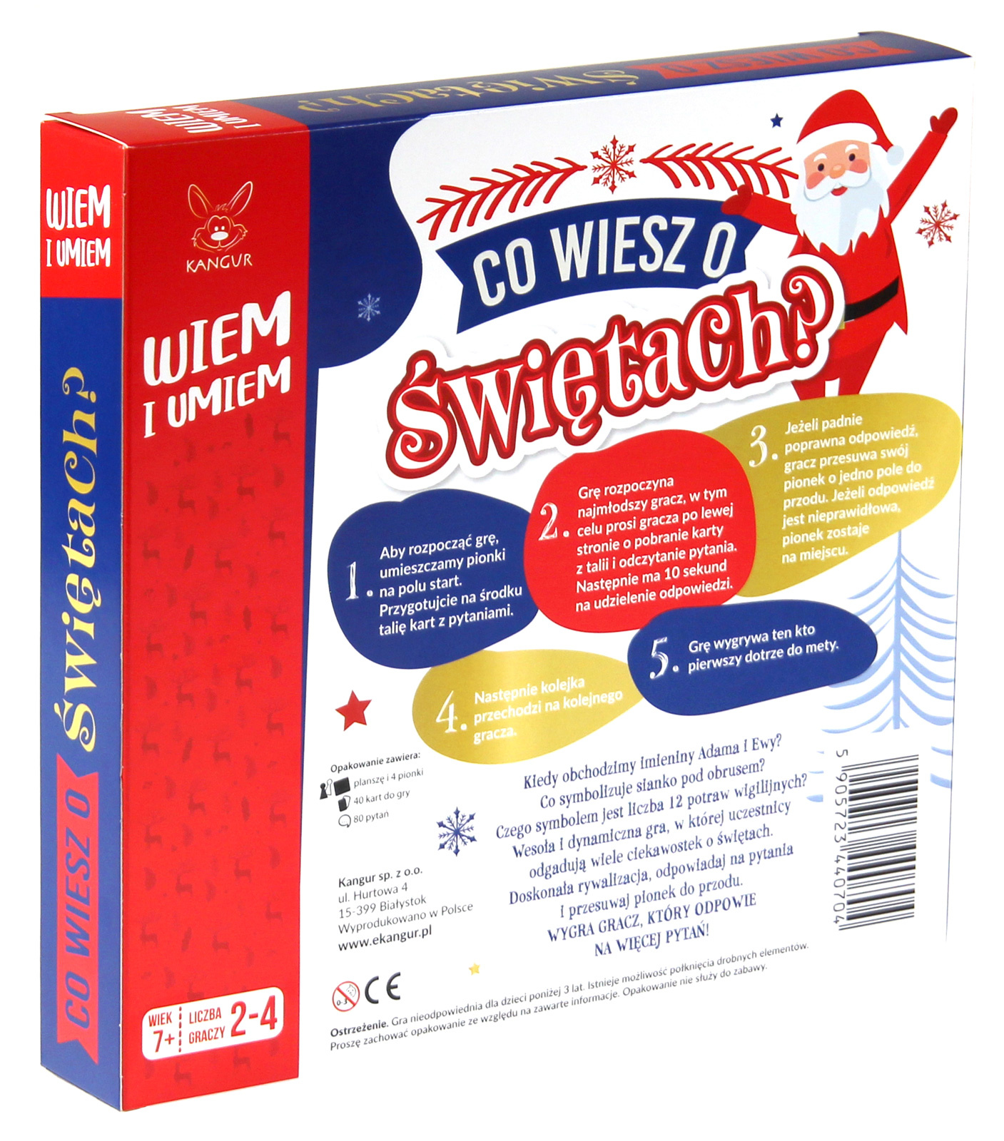 Co wiesz o Świętach to wesoła i dynamiczna gra, w której uczestnicy odgadują wiele ciekawostek o Świętach. Odpowiadaj na pytania i przesuwaj pionek do przodu. Wygra gracz, który odpowie na więcej pytań!