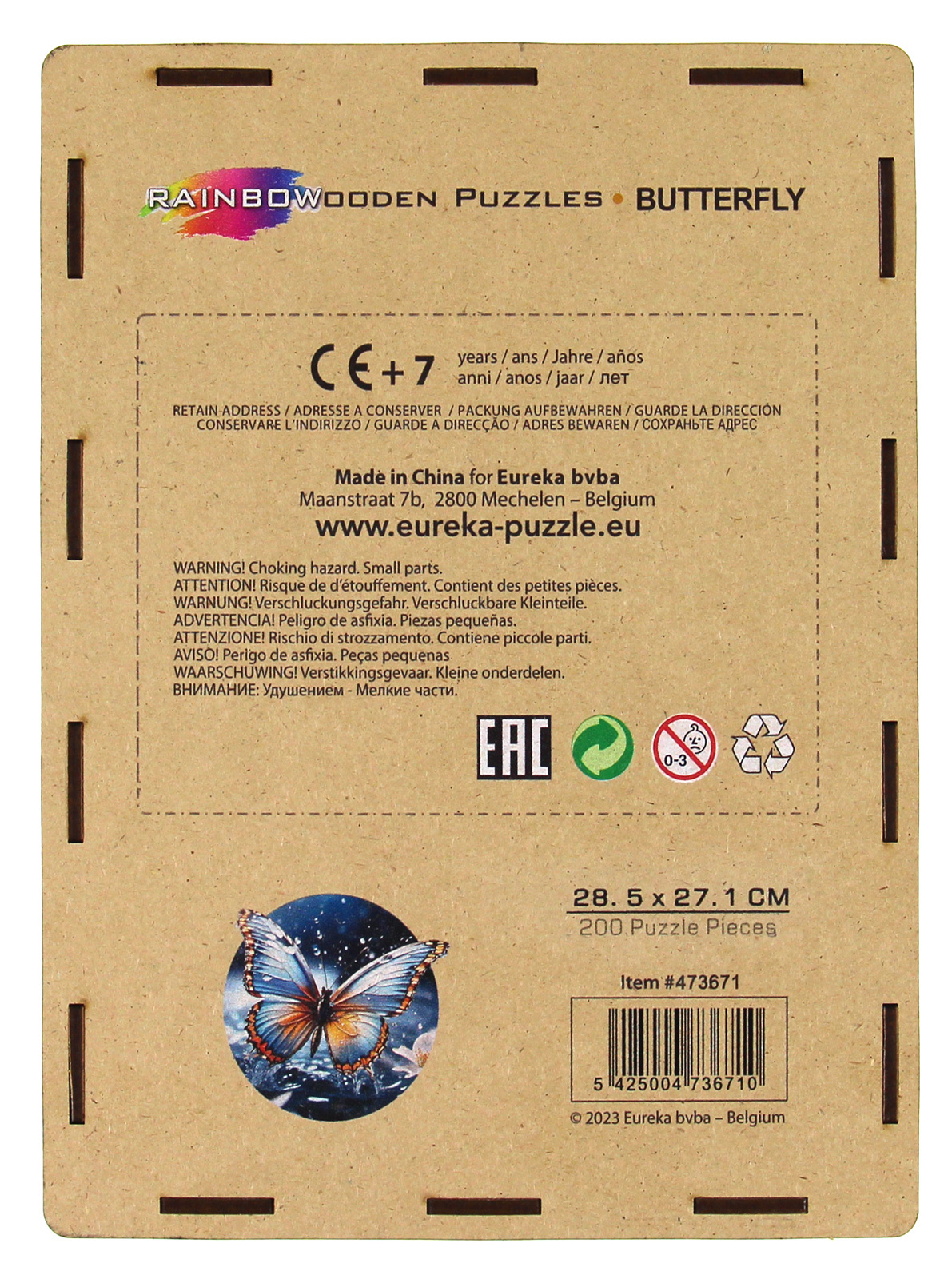 Puzzle drewniane / kolorowe 200 el. - Motyl OUTLET