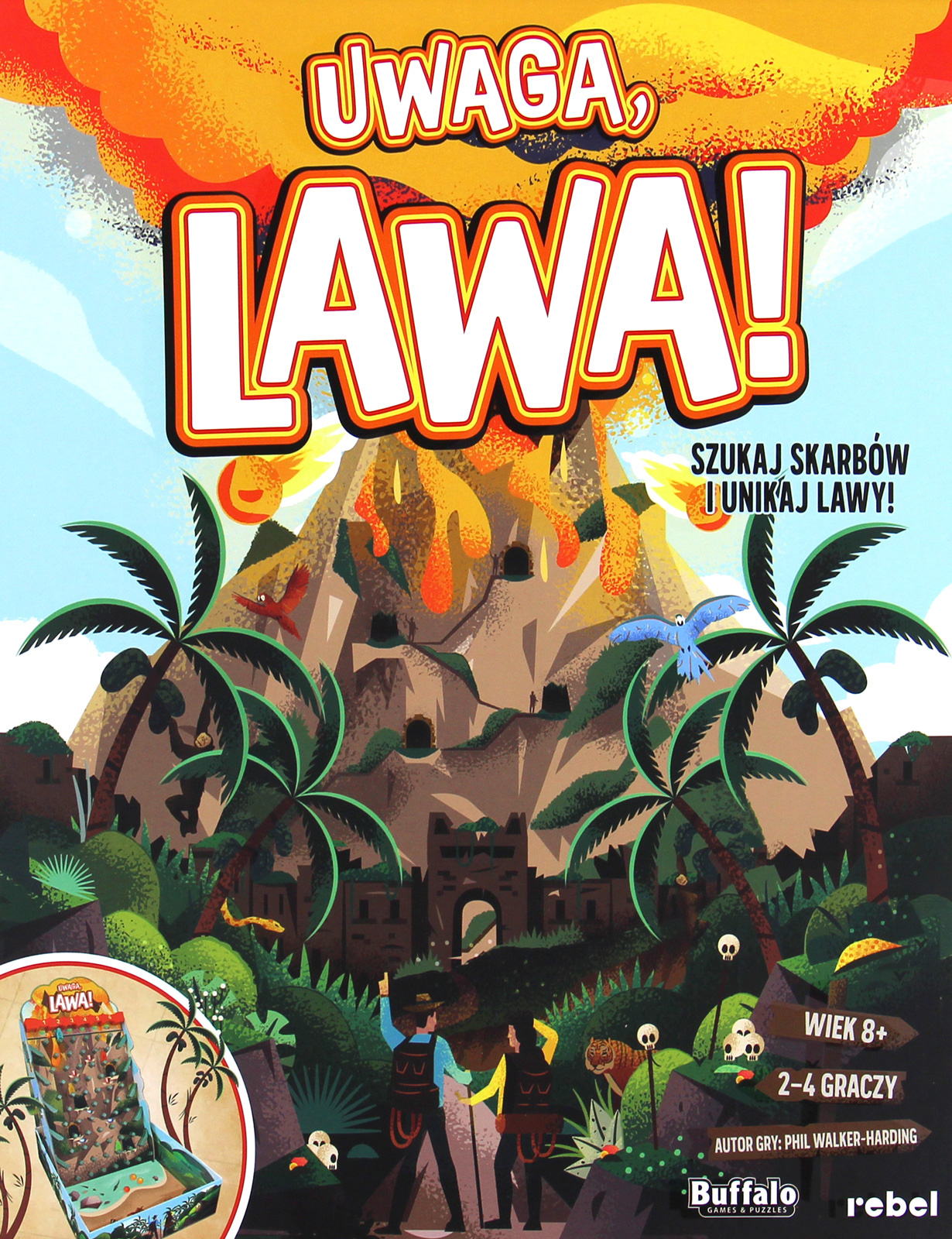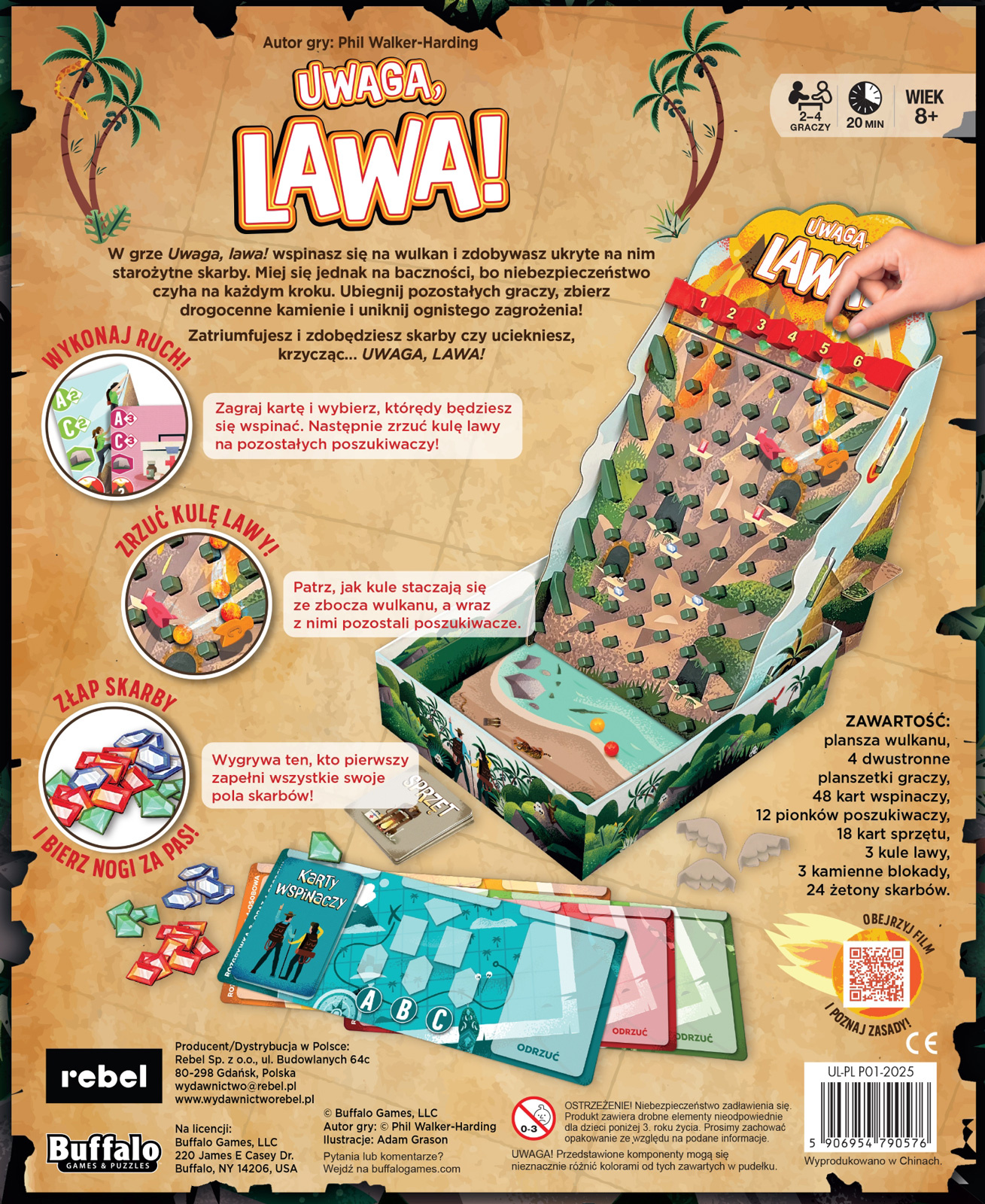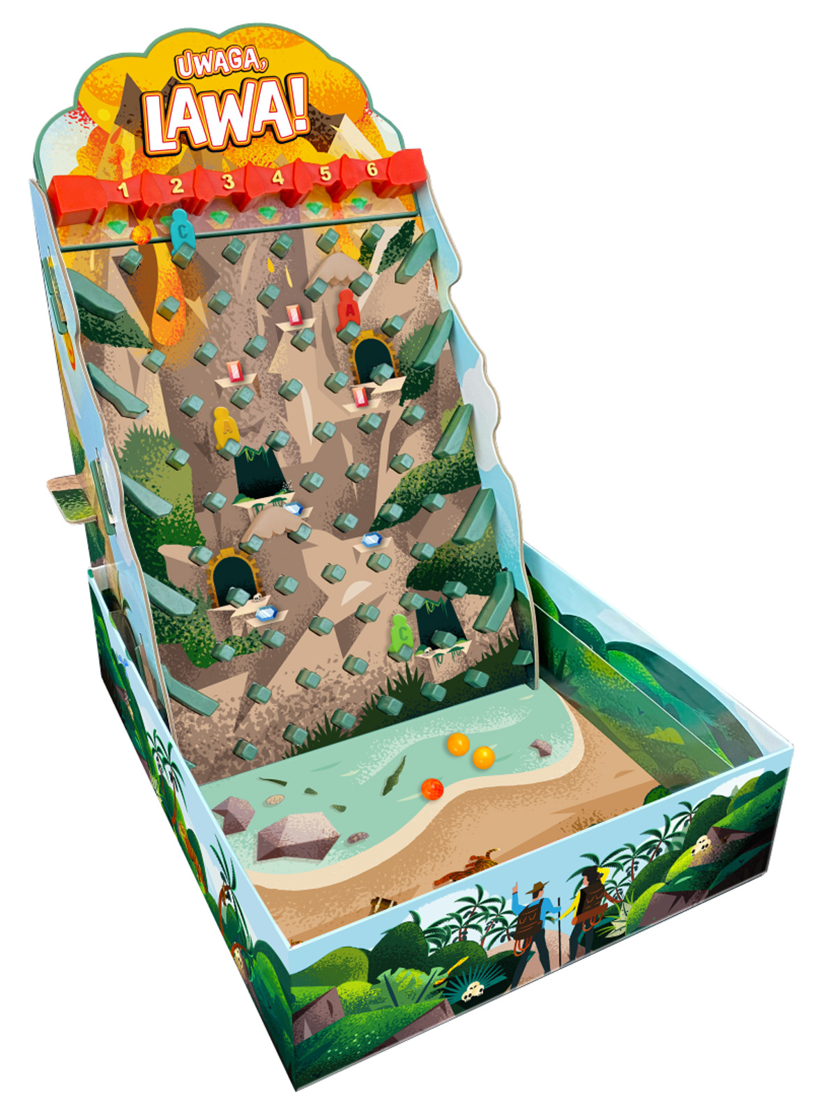 W grze Uwaga, lawa! wspinasz się na wulkan i zdobywasz ukryte na nim starożytne skarby. Miej się jednak na baczności, bo niebezpieczeństwo czyha na każdym kroku. Ubiegnij pozostałych graczy, zbierz drogocenne kamienie i uniknij ognistego zagrożenia!