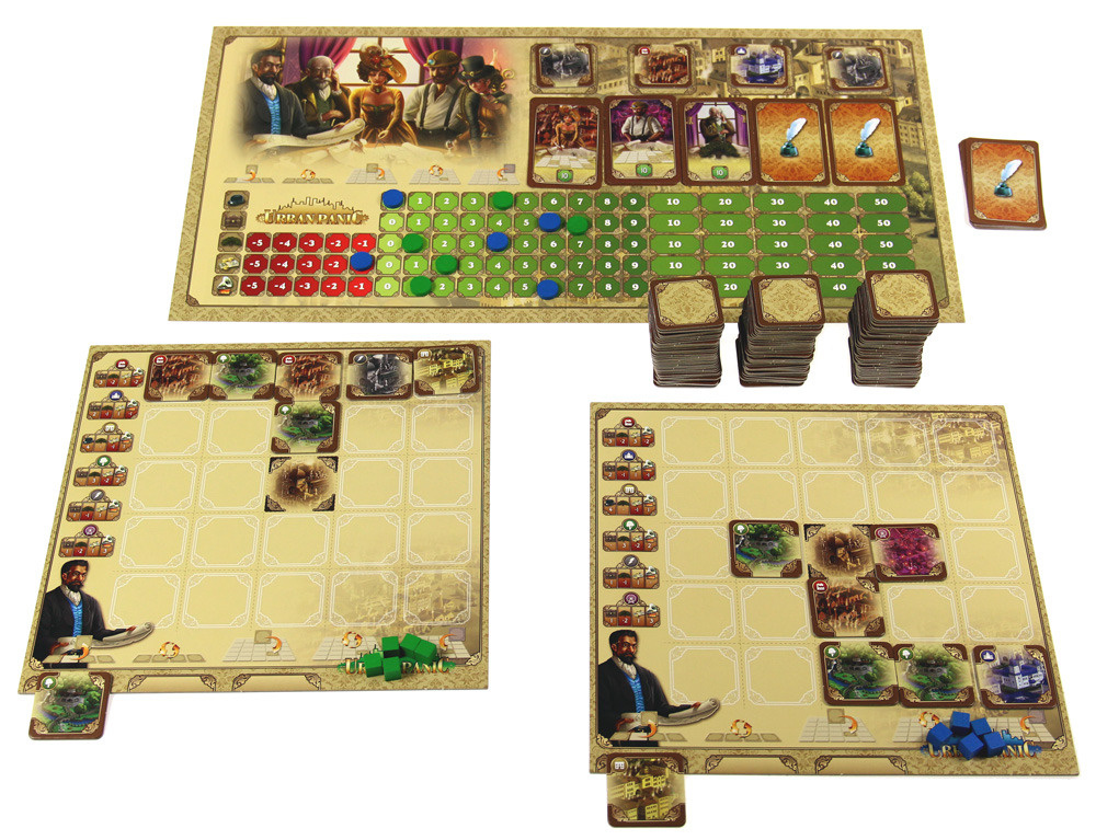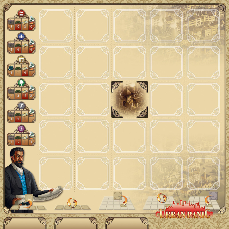 Na początku rozgrywki, każdy z graczy otrzymuje planszetkę, reprezentującą jego miasto. Planszetki mają rozmiar 5x5 kafli, a na środku każdej z nich, znajduje się rynek. Na obszarze gry, dostępnym dla wszystkich graczy, umieszcza się planszę główną.