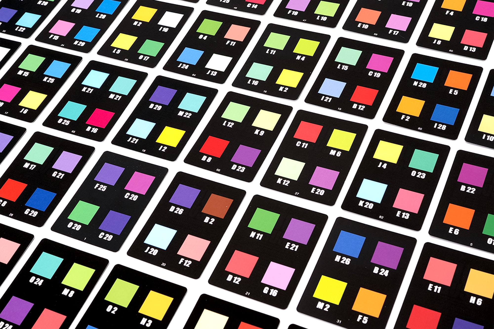 Jak dobrze potrafisz opisać kolor? To nie lada wyzwanie, gdy do wyboru jest aż 480 barw! W grze Hues and Cues (Hue - natężenie albo odcień koloru, Cue - podpowiedź albo sugestia) udzielasz 1- i 2-wyrazowych podpowiedzi, aby pomóc pozostałym graczom odgadnąć określony kolor na planszy.