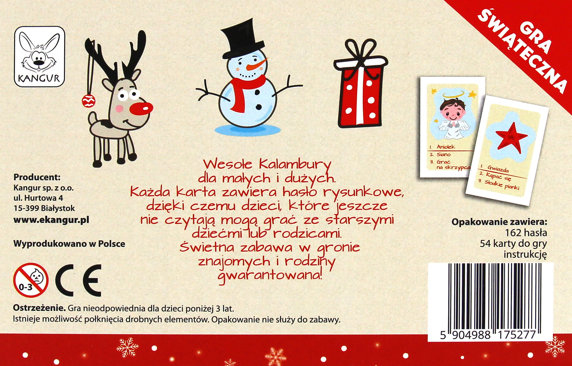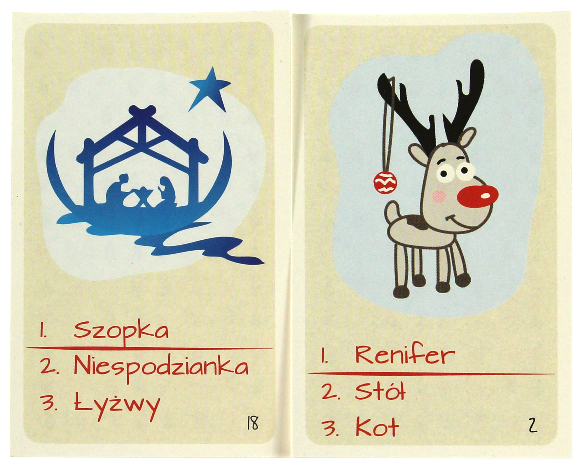 Wesołe kalambury dla małych i dużych. Każda karta zawiera hasło rysunkowe, dzięki czemu dzieci, które jeszcze nie czytają, mogą grać ze starszymi dziećmi lub rodzicami. Świetna zabawa w gronie znajomych i rodziny gwarantowana!