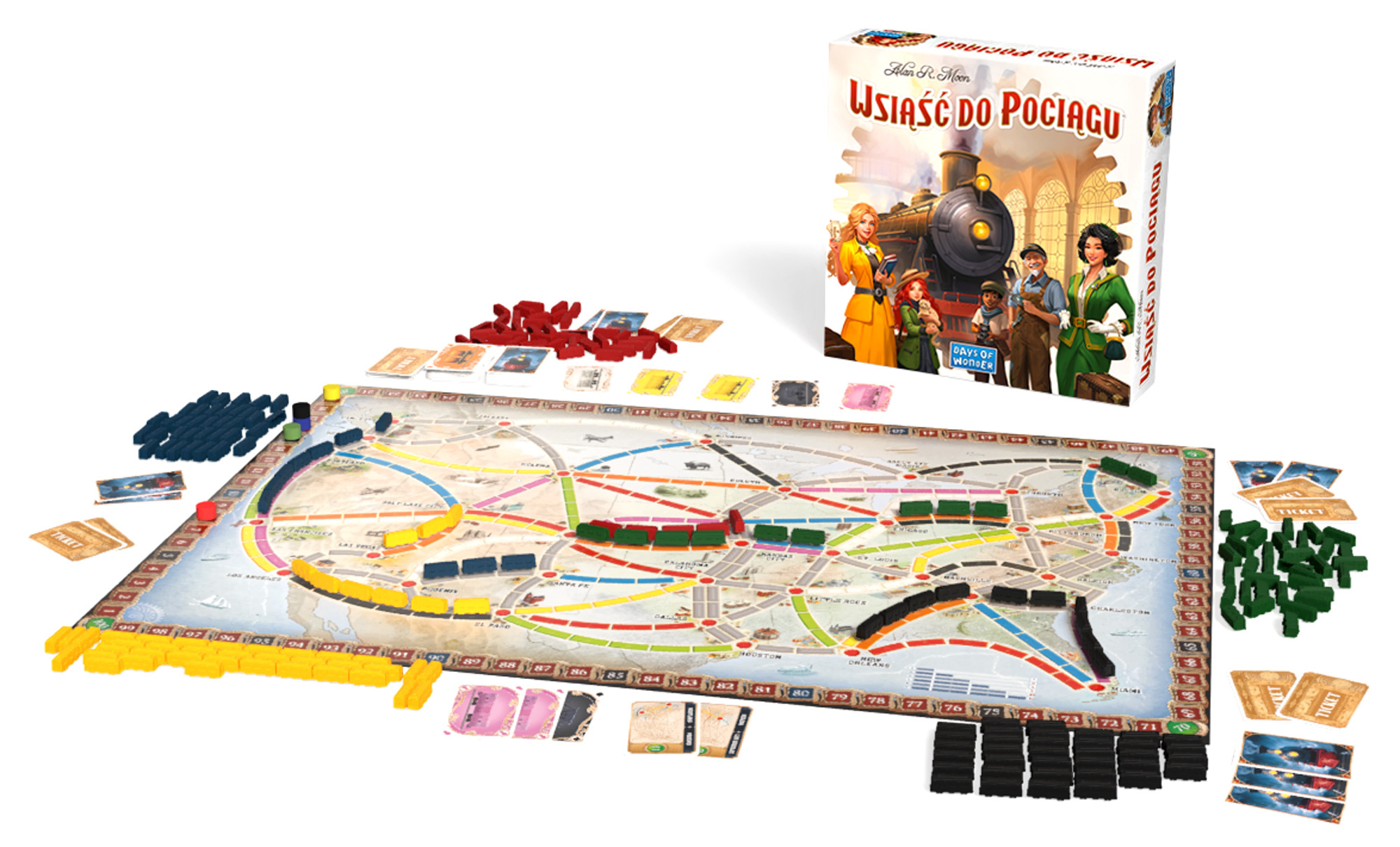 Wsiąść do pociągu to prosta i elegancka gra planszowa, której zasad można nauczyć się w 5 minut. Zapewni dziesiątki godzin dobrej zabawy dla całej rodziny, w tym także doświadczonych graczy! W pudełku znajdziecie: wielką mapę sieci kolejowej Ameryki Północnej, kolorowe wagoniki dla graczy, proste ale ciekawe zasady oraz wiele godzin fantastycznej zabawy!