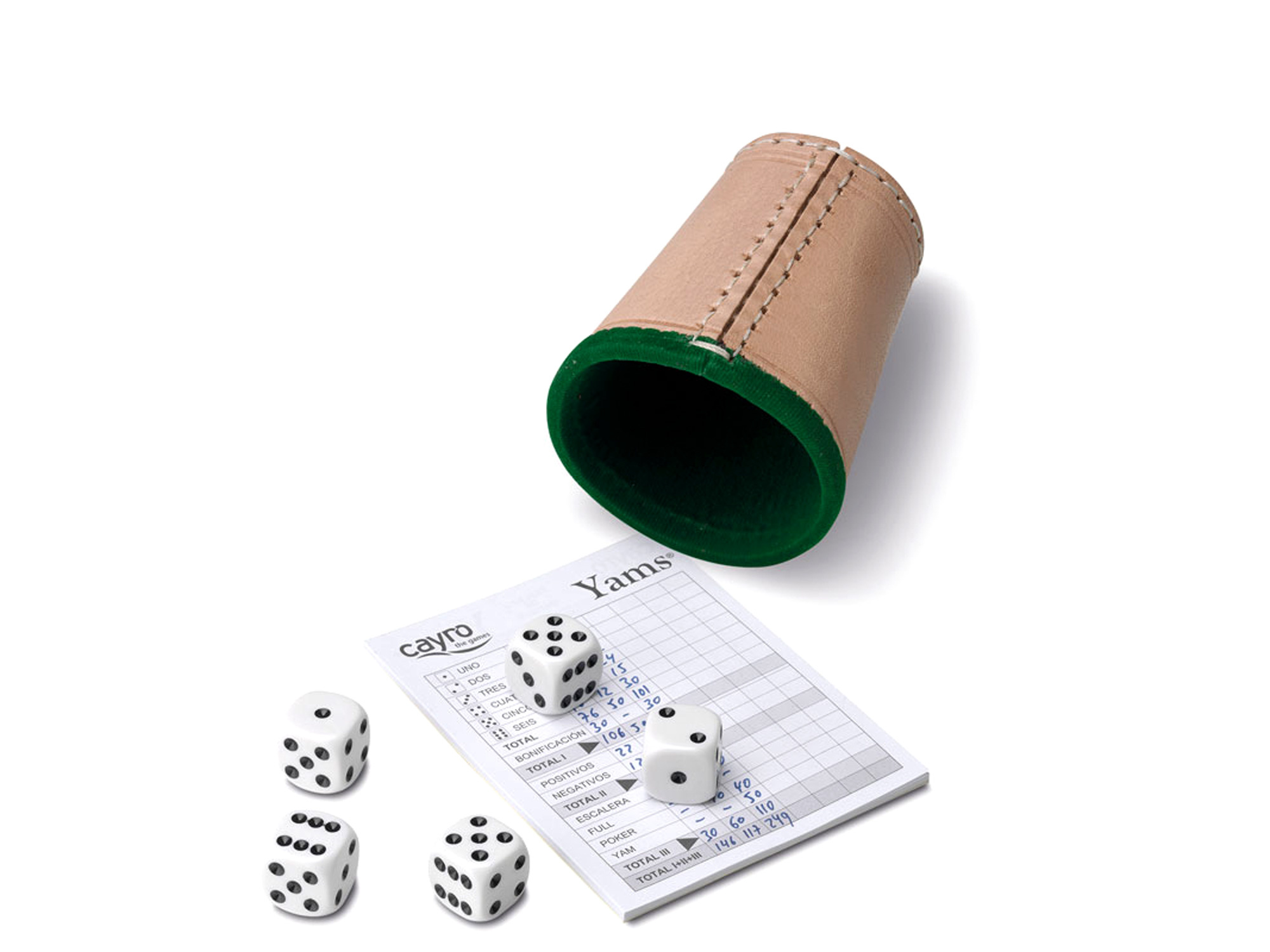 Zestaw do gry Yams: skórzany kubek + kości oczkowe + notes (676)
