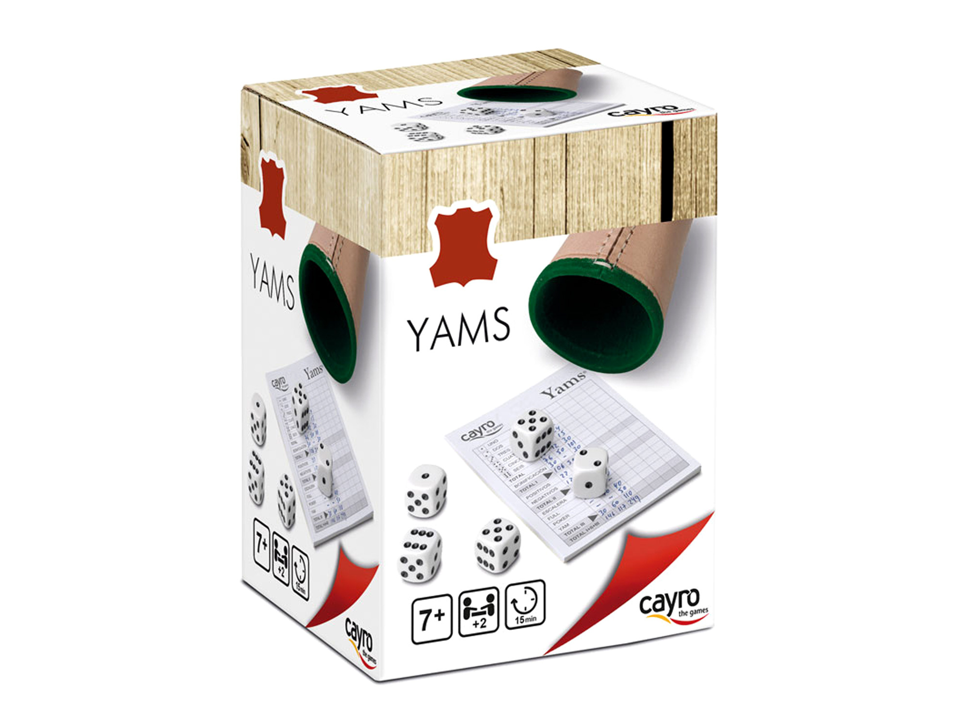 W grze Yams gracze starają się zdobyć jak najwięcej punktów, wyrzucając odpowiednie kombinacje na pięciu kostkach. W opakowaniu znajduje się pięć kości oczkowych do gry, notes do zapisywania punktów oraz estetycznie wykonany skórzany kubek.