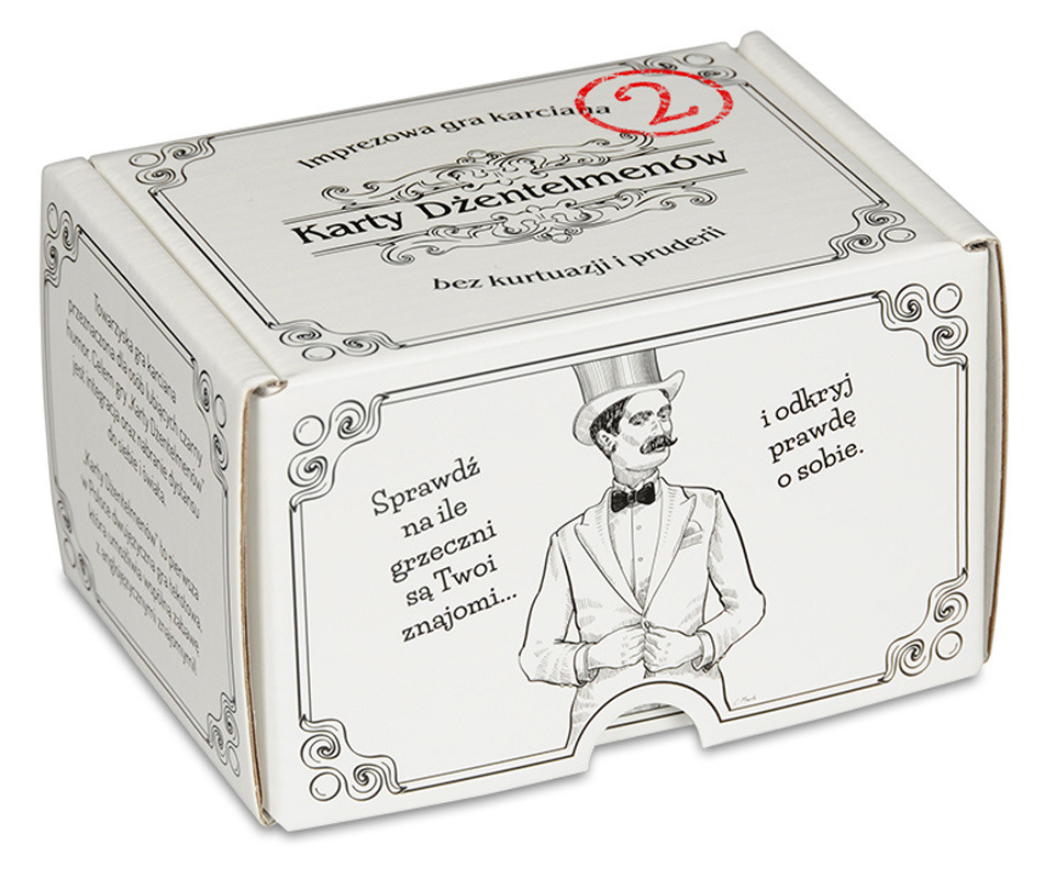 Karty Dżentelmenów - Epizod 2 to towarzyska gra karciana bez kurtuazji i pruderii, za to z dużą ilością czarnego humoru. Dżentelmeńskie rozgrywki, z pewnością urozmaicą każde spotkanie w gronie błyskotliwych i obdarzonych niebywałym poczuciem humoru osób. Nie powinno jej zabraknąć na Twojej imprezie!