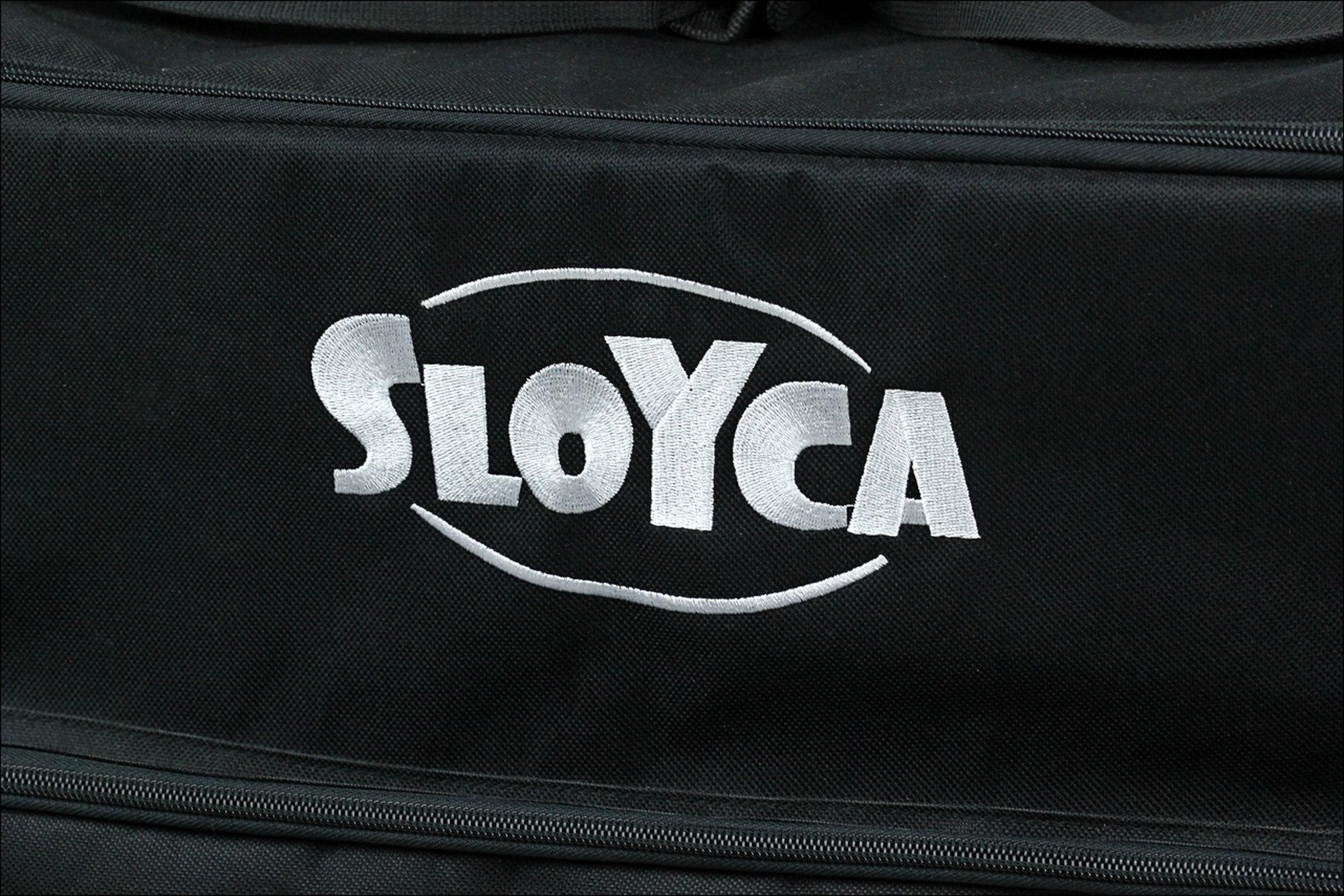 Torba marki Sloyca została wykonana z bardzo wytrzymałej tkaniny poliestrowej (typu Oxford 1680), która jest jednocześnie wodoodporna, więc deszcz nie zniszczy waszych ulubionych gier. Tkaninę łatwo utrzymać w czystości – w razie potrzeby, wystarczy przetrzeć ją za pomocą wilgotnej ściereczki. Na przedniej ścianie torby znajduje się duże, haftowane logo "Sloyca".