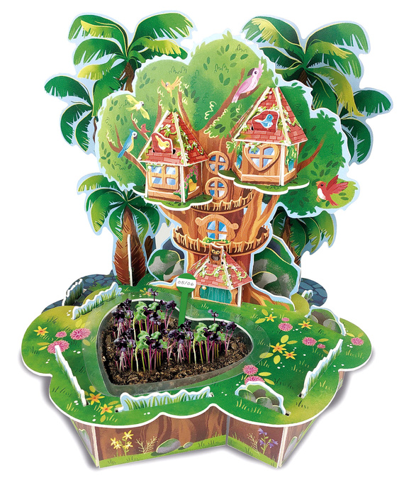 Złóż swój domek na drzewie z tekturowych elementów oraz naucz się jak uprawiać rośliny. Czy kiedykolwiek zastanawiałeś się jak one powstają? Podążaj, krok po kroku, za wskazówkami znajdującymi się w instrukcji, a zobaczysz jak szybko wyrosną! Kiedy roślinki będą piąć się w górę, wymyślaj historie, które mogą się zdarzyć w kolorowym domku na drzewie.